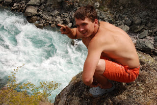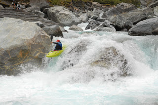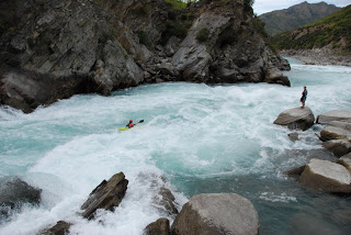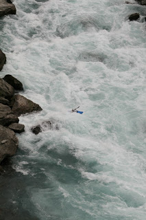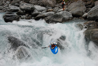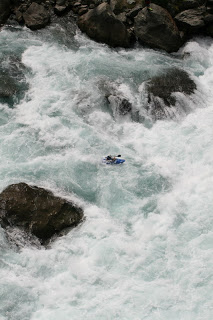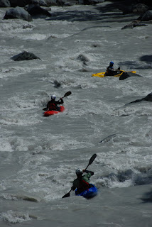 Druha skupina to ale o moc lahsie teda nemala. Na perthe obtiaznosti WW4 az WW5 stravili 9,5 hodiny, spoznali niekolko crazy pereji dali si nejake rozplavby a nakoniec sa o 22.00 vratili do kempu. Hned prvu tazsiu perej sme asi troska podcenili, najma dost technicky najazd -a hned z toho boli 3 rozplavby, navyse Sarka stratila padlo a Smolik boticku. Vzhladom na to, ze na druhej nohe boli este pluzgiere - pozostatok z "oddychoveho" rugby- sa mu teda nasledujucich 9 hodin nechodilo zrovna najlepsie. Rieka bola nadherna, najma spodny kanon. Fotkz bohuzial nemame (to by sme tam boli asi este aj teraz...)