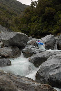 Dalsi den po vydatnom lejaku sa stastie obracia na nasu stranu a vydavame sa na Riecku Kakapotahi obtiaznosti WW4 aa WW5 v zostave Palo, Zajic, Honza, Tomo a Karasek. Jedna sa o totalnu moralovku. Vstupna perej je miesto kde sa cela rieka siroka asi 20 metrov zleje do 1,3 metrovej skary kde sa tvori valec a navyse sa tam neda vidiet. Z dalsimi perjami to neni ale o nic lepsie. Zajic nam sice vsetko popisuje ale stale skaceme do miest, do ktorych neni vidiet a nakoniec ako bonus preneasame jeden turbo sifon, kde sa vystupuje na mali kamienok asi meter nad jeho hranou. Na dolnom useku rieky sa k nam pripaja este olda a evina. Fotky zial nemame lebo kazda zbytocna vec v lodi komplikuje uz tak tazke prenasanie.