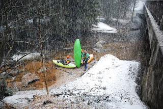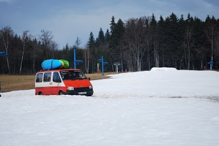 Kam sa pojdeme kajakovať na Velku noc sme riešili dost dlho, alternativ sme mali viacero ale nakoniec sme sa rozhodli že pojdeme na tri dni do Čiech trochu pocreekovať a potom na tri dni na Plattling trochu potrenovať na preteky. Do čiech som mali isť povodne len ja s Tomom ale na poslednú chvílu sa k nám pridal aj hehe. A tak sme štvrtok ráno vyrazili Heheho fordkou do Prahy. Cesta bola docela dlha keďze sme išli priemerne asi 90km/h ale nakoniec sme boli asi okolo tretej v Prahe kde sme sa stretli s Kopečkom a hneď sme vyrazili ďalej na sever do Jizerskych hor. Na plane sme mali splaviť hornú Mumlavu ale keď sme k nej došli zistili sme že nema zrovna moc vody a už bolo dosť neskro tak sme si dali len spodnu Mumlavu. Našim največším šťastím bolo že Kopeček mal chatu kusok od tejto riekz a tak sme mali docela luksusne spanie. To sa ukazalo ako klucove keďže teplotz boli celi čas docela nízke a očakávaný dážď sa skvor zmenil na sneh. Nasledujuce dni voda stale klesala a tak sme si znova splavili spodnu Mumlavu, Kamenici a Jizeru. Vsetko malo vody skvor menej ale boli sme radi že aspoň možme padlovať.