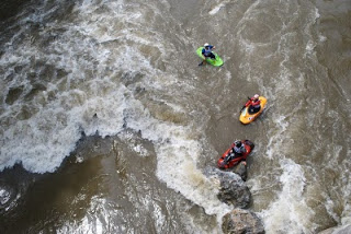 Minulý víkend sa konali freestylove preteky v Grazi kote su súčastou Alpin river freestyle cup. Tuto akciu sme si nemohli nechat ujst aj ked sme tam nemohli ist nejak skor a tak sme vyrazili v sobotu skoro rano. Naštastie to do Grazu neni až tak ďaleko a tak už o pol desiatej sme si davali treningove jazdy pred pretekmi. Vlna bola velkom dobra, mala vela peny takze celkom dobre drzala. Den predtim bolo vraj o pol metra viac vody a vlna hrozne vyplachovala. Na pretreky sa nakoniec prihlasilo okolo 30 chlapovy 15 žien nejaky C1-notkari a juniori, dokopi asi 50 pretekarov. Po kvalifikačných jazdách nasledovala Teva pappboot - zavod na lodiach pozliepanych z kartonov. Po tejto pauze už nasledovalo semifinále mužov a hneď po tom finálové jazdy. Najlepšie sa darilo Petovy Csonkovi ktory na tejto malej vlne skakal naozaj vysoke triky a počas celých pretekov si držal výrazný nádskok. Druhý nakoniec skončil Seppi Strohmeier (DE) a treti James Bebbingtom (GB). V ženách vyhrala ruska Katya Kulkov, druhá bola Nina Halasova a tetia Kača Migdaouva (CZ).
