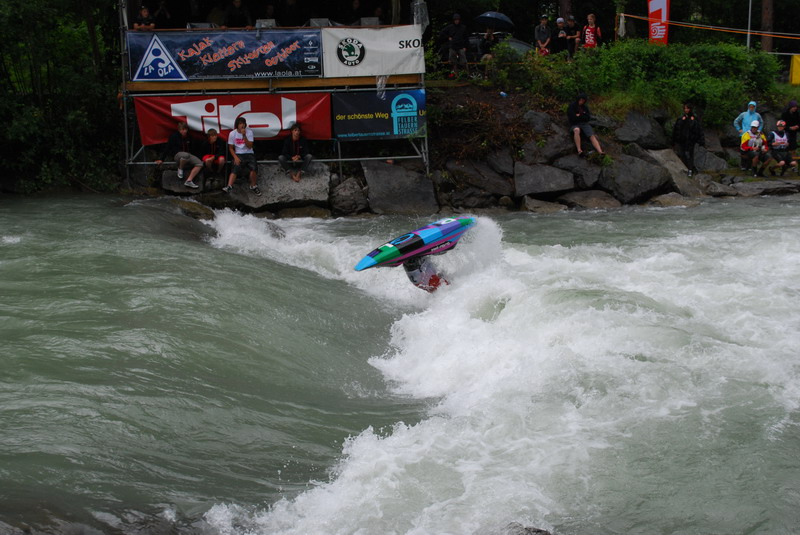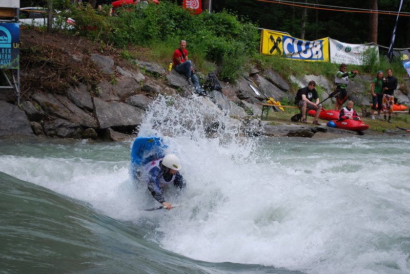 kayaksessionuV nedelu hneď po pretekoch sme sa pobalili a v zložení Kača, Evina a ja sme pokračovali na ďalšie preteky, tentokrát freestylove majstrovstva Európy v rakuskom Lienzi. Do lienzu sme dorazili ešte v nedelu v noci a už nás tu čakal zvišok slovenskej crew - Tomo s Markou, Cuca, Činka a Nina. Nasledujúce dni pomali prichádzali aj ostatní pretekári a my sme tento čas trávili trénovaním. Playspot bol dost náročný, docela vyplachoval, a ešte sa neustále menila voda takže aj valec bol každý deň iný. Pretekz sa začali úž v utorok večer otváraím ceremoniálom a v stredu boli kvalifikacne jazdy kategórii K1 ženy, juniory, C1 a OC1. Hlavne u žien to boli výsledky dost prekvapivé ked niektoré favoritky ani nepostúpili do semifinále. Velkú smolu mala hlavne Nina, ktorú pri obidvoch nájazdoch vypláchlo a nepostúpila pričom v tréningoch predvádzala nádherné jazdy.