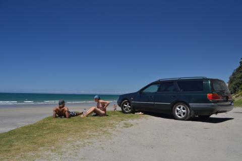 Po tazkej makacke na kiwi farme, co zas az taka makacka nebola, sme sa rozhodovali co dalej. Praca nebola, kaituna ojazdena, penazi malo tak sme sa rozhodli ist predat auto a pozicat lacnejsie. Samozrejme si nas auticko docela oblubilo, kedze sme ho vytunili asi o 100% a zrejme zaculo nas rozhovor tak zacalo zase protestovat. Asi po 100m smer Auckland zhaslo a neslo nastartovat. Nic ine nam neostavalo len ho odstavit na put-in pri kajtune. Boli sme obehat dakych opravarou, ale v sobotu to bolo celkom beznadejne. Dali sme si obed u Mira na dome a ze si pojdeme aspon zakajakovat. Nemile prekvapenie nas cakalo, ked sme prisli k nasmu auticku a na nom vylomeny zamok. Rychlo sme ho zacali precesavat co zmizlo, ale nastastie boli straty minimalne. Na druhej strane sa nam podarilo auto nastartovat. Ale aucklend sa tak ci tak nekonal lebo sme mali vyrvaty zamok a kedze bola sobota a kiwici mali este aj v pondelok sviatok tak sme museli cakat az do utorka na zamocnika. Cas sme si skratili samozrejme ako inac kajakovanim. No tetoraz to uz nebola kajtuna, sli sme do oblasti tongariro, kde bolo par peknych skokou na ktore som sa celkom odhodlavala, ale nakoniec boli uplne v pohode. Chalani mali este na plane Tree trung gorge, ktory ako zhodnotili mal vela vody a tak sme sli spat. Zatial sme rozbehli predaj auta na nete, dokonca sa nam ozval jeden typek a tak sme sa v stredu hnali za nim, aby nam 15min. pred aucklandom oznamil ze uz kupil auto. No nic ine nam uz neostavalo len ho predavat tam. Dlho sa nedarilo, ale spoliehali sme sa na nedelny bazar. Nanestastie sa na nas stastena este neusmiala, tak sa nam nepodarilo ho predat ani tam. Sklamani ale rozhodnuti ist na juh s tym co mame sme sa vybrali smer juh. Tu sa uz zacala stastena obracat. V Hamiltne nam zapipal mobil ohladom nasho auticka, tak sme sa znovu otocili spat. Super podarilo sa. Na druhy den rano sme auto predali takemu svajciarskemu pariku. Rychlo sme si sli pozicali auto a uz sme asi treti krat sli smer juh. Tu zase pri Hamiltne (asi je tam dobra aura) sa nam este ozval kamarat kajakar, ze ma pre nas pracu na farme jeho rodicou. Perfektne. Este sme sa zastavili par dni porpacovat u nich a uz sme naozaj vyrazili smer juh s mensou zastavkou v bliss-sticku, kde sme si vyzdvihli veci co nam bral miro a zmajtrovali sme zahradku na naseho noveho tatosa. Na druhy dem sme si stihi vo welingtne este kuknut uzasne